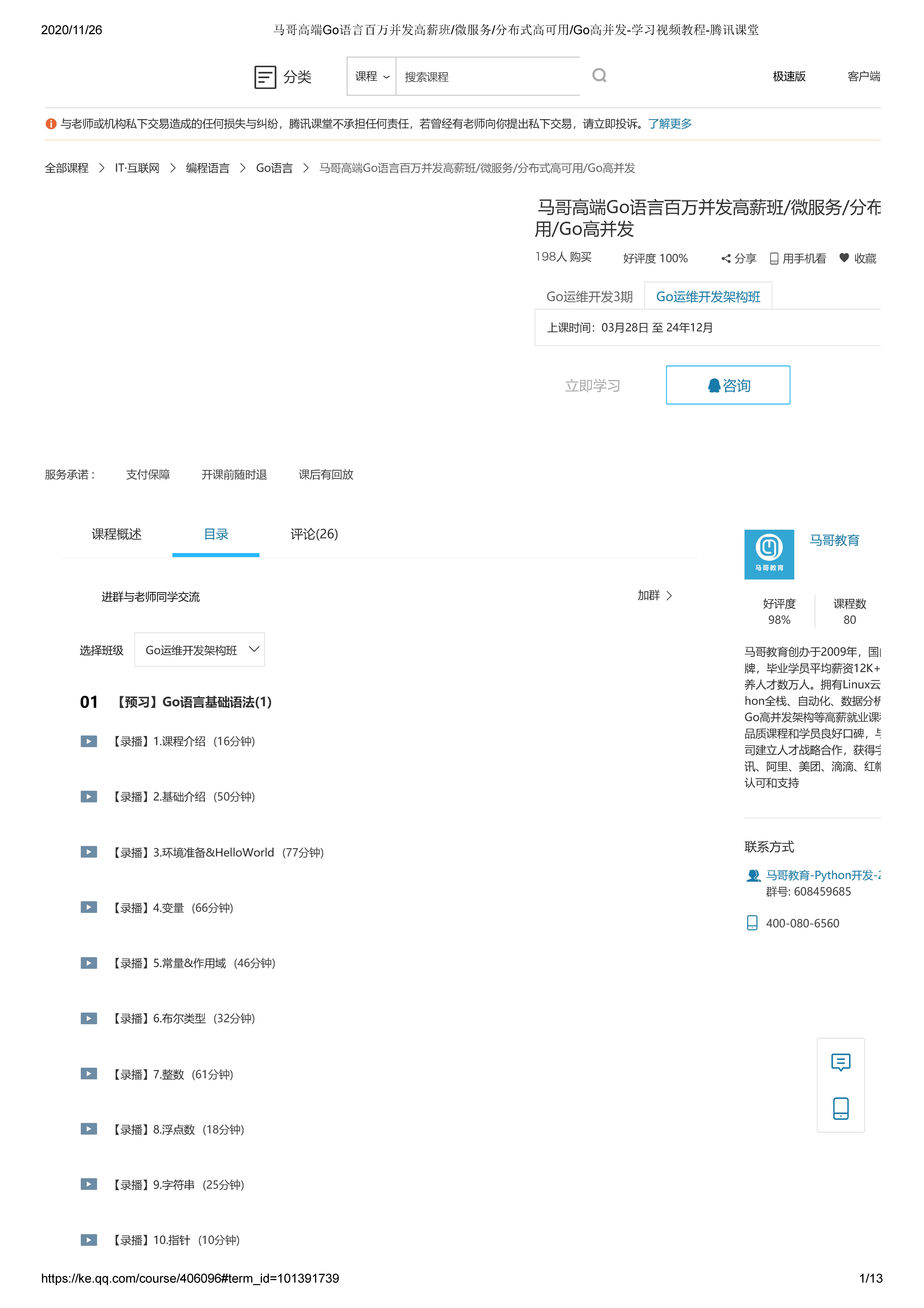 【IT培训】马哥教育-高端Go语言百万并发高薪班微服务分布式高可用Go高并发-8400元